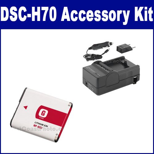 Sony DSC-H70 Digital Camera Accessory Kit includes the following items: 1) Mini Battery Charger Kit for Sony NP-BG1 & NP-FG1 Batteries - with fold-in wall plug, car & EU adapters 2) NP-BG1 Rechargeable Lithium-Ion Replacement Battery Pack (3.7v, 1200mAh) Replaces Sony NP-BG1 & NP-FG1 Batteries